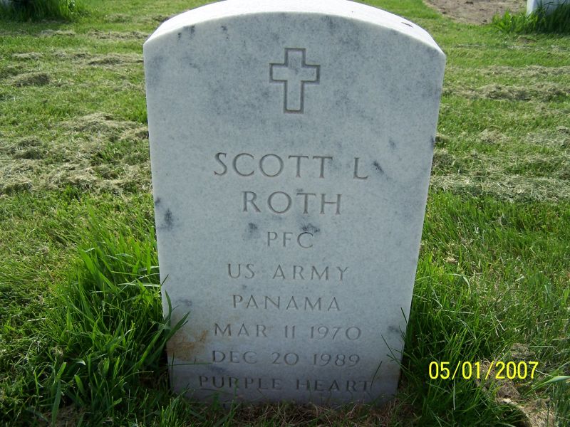 PFC Roth received a full military funeral on December 29, 1989, and was laid to rest in his hometown of Rock Island, Illinois at the Rock Island National Cemetery.
