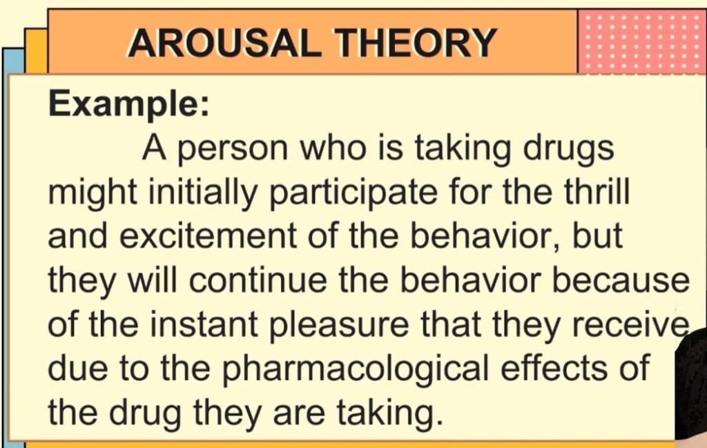 Even though the arousal theory can explain different types of deviant behavior, it appears to best explain why some indulge in substance abuse. Researchers have found strong correlations with personality traits that include sensation seeking, impulsiveness and extraversion to drug abuse. This theory can distinguish those people who seek immediate gratification and the physiological stimulation that comes with consuming drugs. In other words, self-medicating to seek arousal.