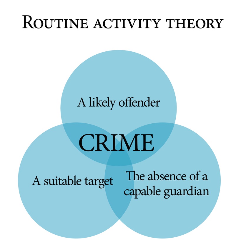 Routine activity theory (RAT) explains crime as the result of three elements converging in time and space: